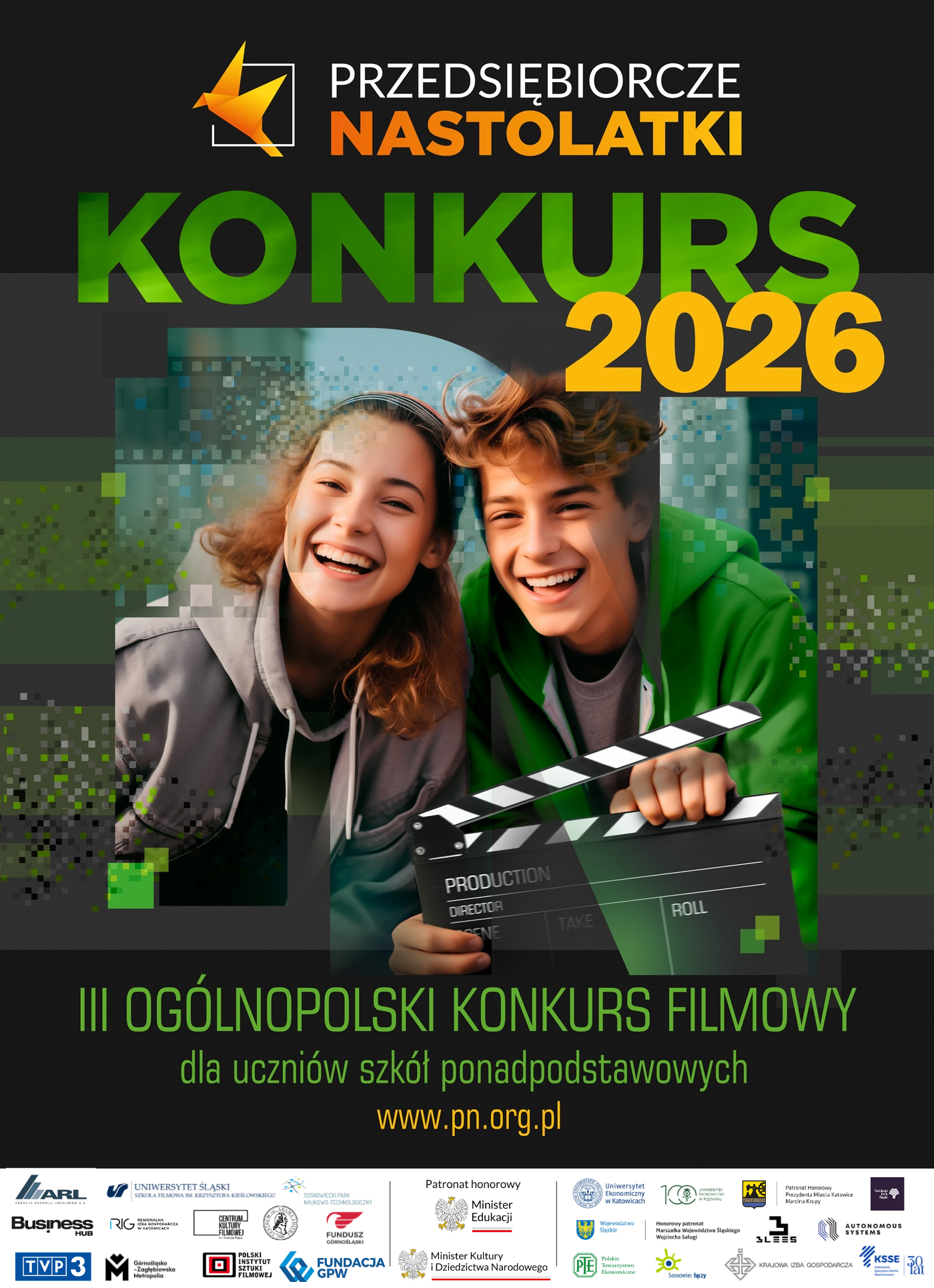III Ogólnopolski Konkurs Filmowy „PRZEDSIĘBIORCZE NASTOLATKI” realizowany jest pod patronatem Ministra Edukacji oraz Ministra Kultury i Dziedzictwa Narodowego, we współpracy z samorządami, uczelniami wyższymi kształcącymi w obszarze filmu i ekonomii, czołowymi organizacjami gospodarczymi oraz instytucjami otoczenia biznesu.